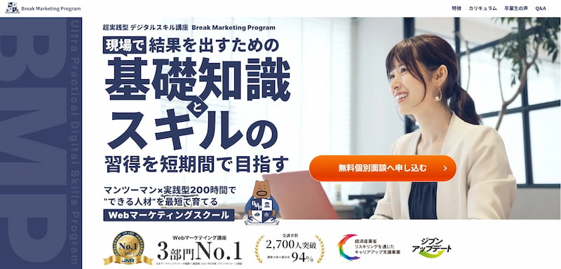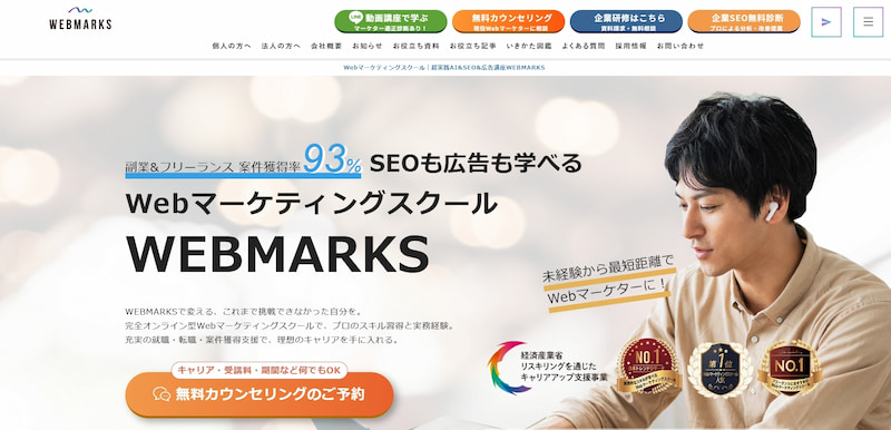 WEBMARKSは、SEOとWeb広告の両方を実務レベルで習得できる完全オンライン型のWebマーケティングスクールです。