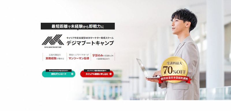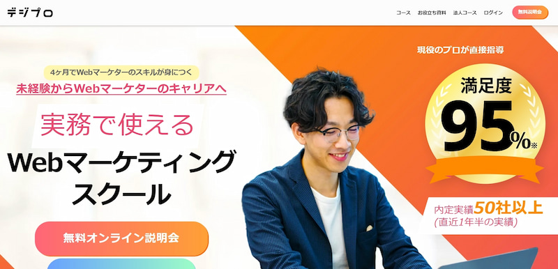 デジプロは、未経験から最短4ヶ月でWebマーケターのスキルを習得できる実践特化型のWebマーケティングスクールです。