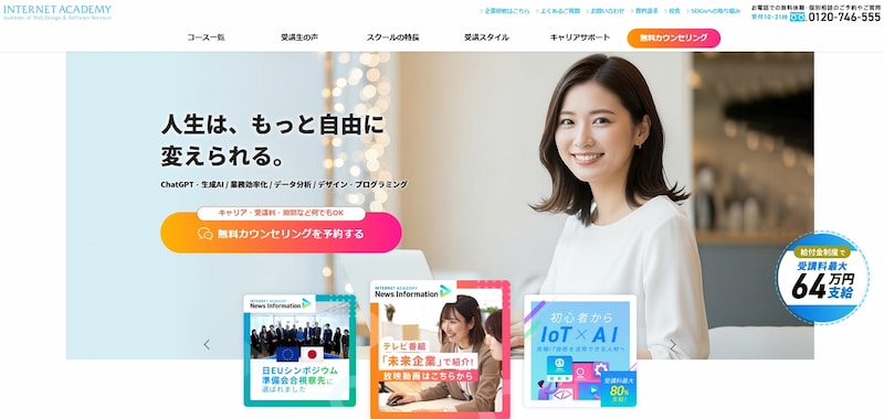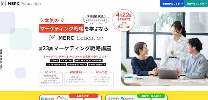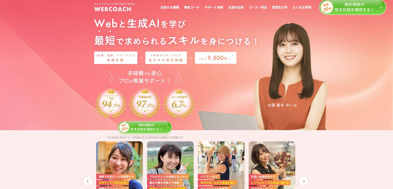 生成AI活用にも対応した講座内容で、転職・副業・法人研修まで幅広い目的に対応しています。