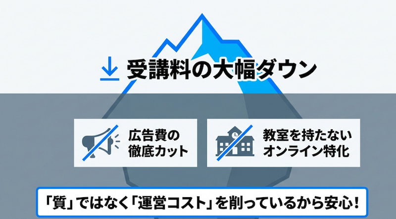広告費を抑えたり、教室を持たずにオンラインに特化したりして、企業努力で安さを実現しているからです。