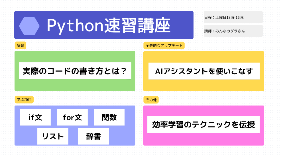 実践で学ぶPython速習講座「初心者を1時間で卒業せよ!!」【テックジム東京本校】