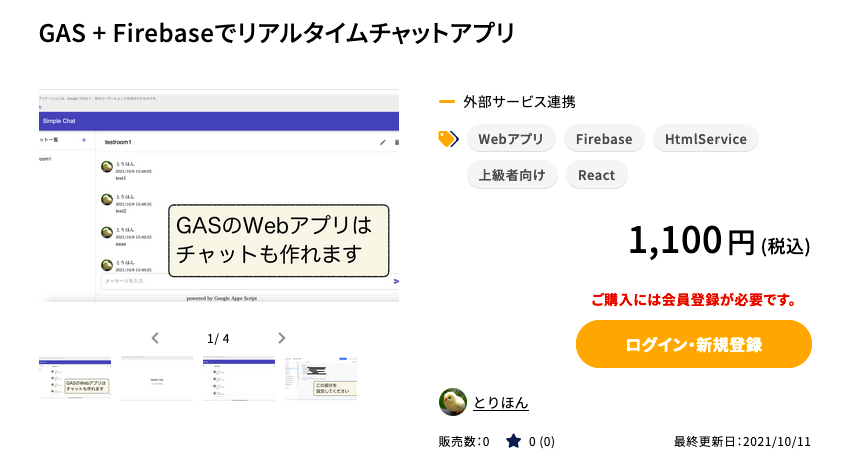 勤怠管理、タスク管理、顧客名簿、販売管理などの業務ツールや、マーケティングツール、自動化ツールなど、Google Apps Scriptのアプリケーション(GASアプリ)を売買するプラットフォームです。